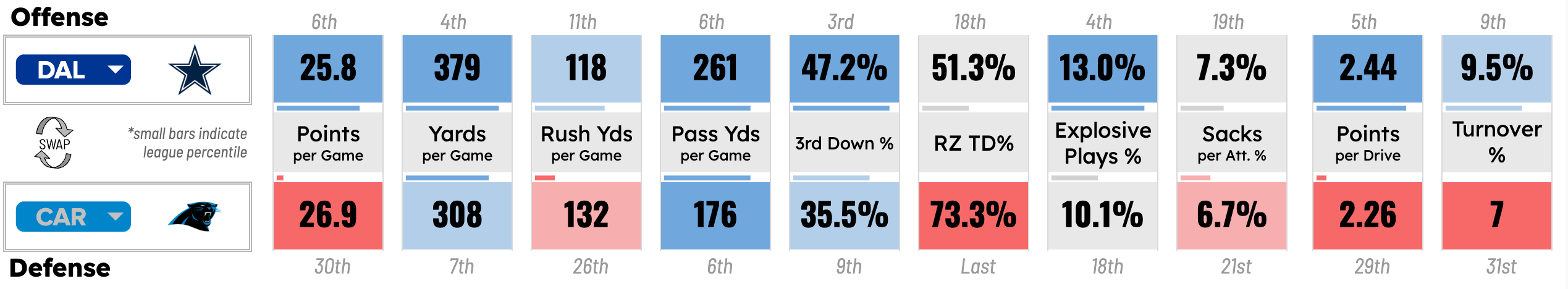 In other words, this isn’t college football. When you see a big double-digit road point spread in the NFL, you should probably run the other direction. The good news is Dallas probably can remember all the way back to Week 3 as it prepares to deal with many similar details this week in Charlotte.