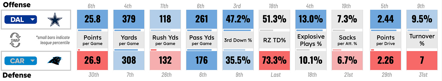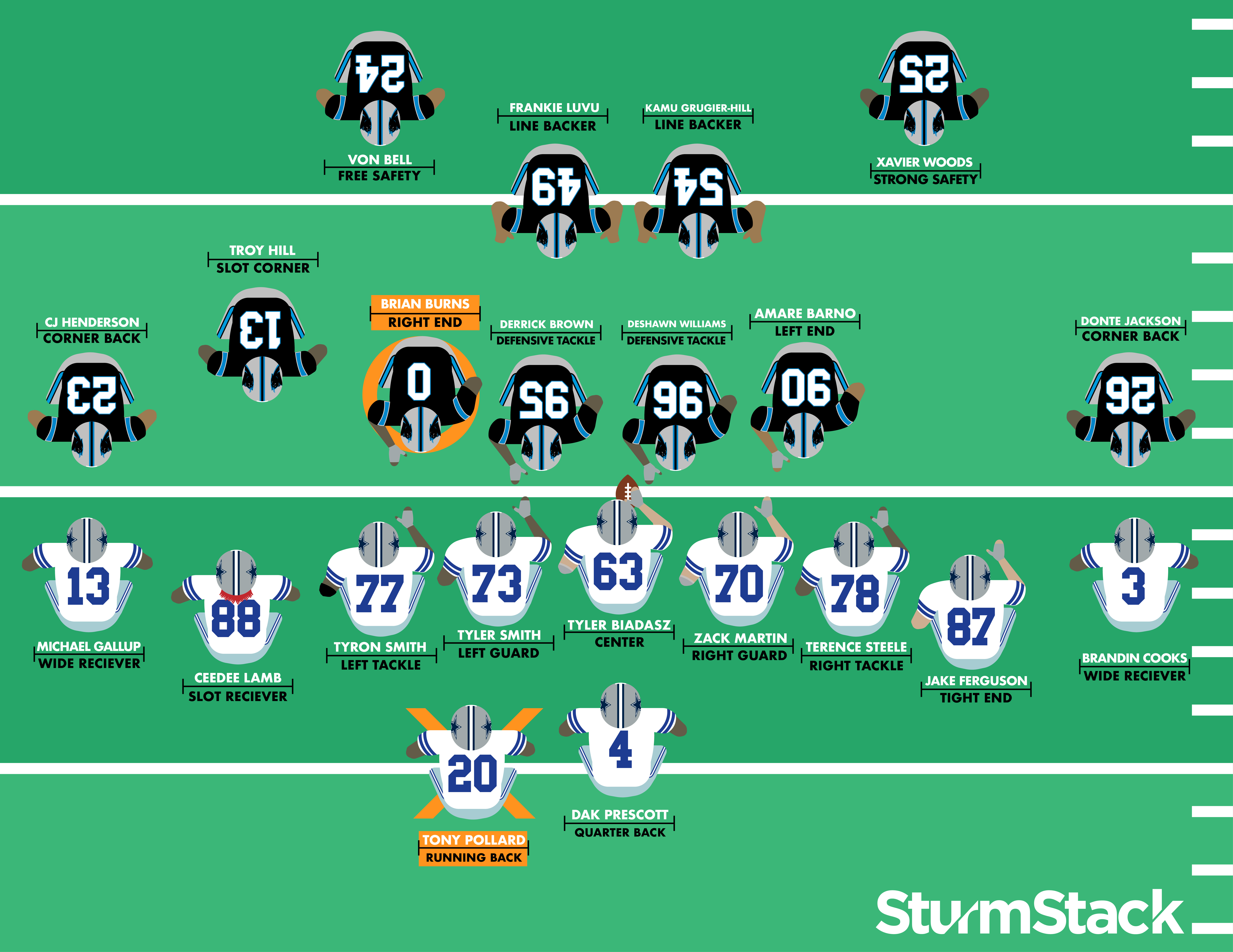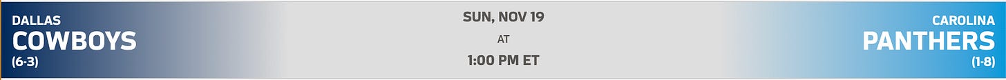 Dallas doesn’t hide these things very well when they talk and you could see the last month that they can nearly call their shots about who is going to get the ball each week in the offense. It seems pretty obvious now that CeeDee and Jake Ferguson have been declared the “go to” guys and Brandin Cooks and Michael Gallup both were boosted in morale recently, that now everyone wants Pollard to know nobody has forgotten about him. That is why we highlighted him this week in our graphic that Skyler makes for us. When he made it, several of these Panthers starters still looked in, but now it appears CJ Henderson is out and Xavier Woods may be out, too. They are already down Jaycee Horn, Jeremy Chinn, Shaq Thompson, and Justin Houston. It is not a great year for Carolina to put a team on the field.