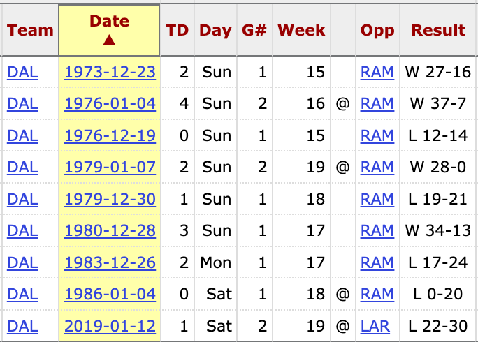 If you are young, you may not know how far back these teams go, but the old-timers definitely know. Since we “leave no #SturmStack readers behind”, let me show you really quick that the Cowboys have played in 66 playoff games in their history – which is a ton. In fact, that is still the most in NFL history. 66!