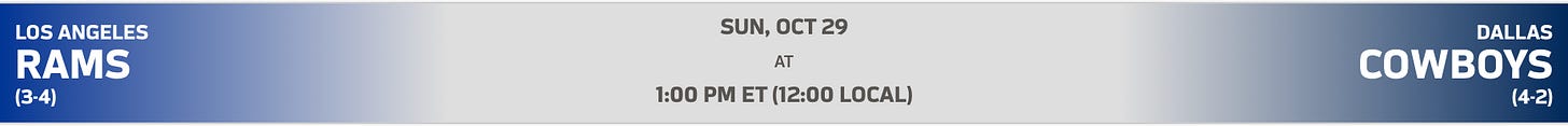But, its all good. The Cowboys have another game to play and with just two losses, they aren’t far at all from where they want to be heading into November if they can take care of business on Sunday at noon against their old friends, the LA Rams.